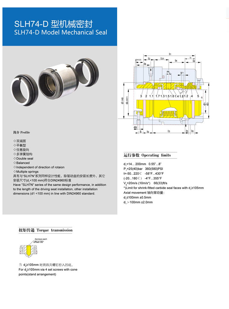 • 型號(hào):???SLH74-D 型機(jī)械密封