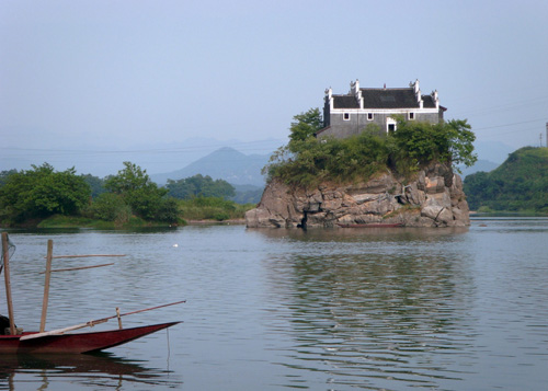 香零山為天然石磯結(jié)構(gòu),地處中流,隨瀟水水勢而展現(xiàn)不同的風(fēng)光,勢浩蕩則如汪洋中之一小舟,水勢弱小則島亭昭然挺立。若雨后日出,煙鎖山腳,霧雨朦朧,往來舟楫,若隱若現(xiàn),給人一種煙波浩渺的意境,因而有“香零煙雨”之稱,為永州八景之一。