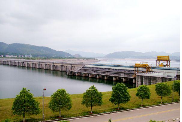 大壩的西面,是水利發(fā)電站,電站共有4臺機組,年發(fā)電量已達到5.56億千瓦小時。船閘座落在大壩的東側,一次可通行二艘千噸級輪駁船隊。