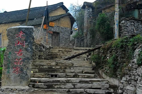 這里是一座石頭城,呈九宮八卦布局,設計精巧,而且攻防體系和排水體系都相當完整,這里曾有著富足而輝煌的歷史。直到民國25年,烏龍山土匪1000多人攻打老洞苗寨12天12夜,燒掉老洞古建筑群2座,搶走銀光洋一萬余塊,銅元一萬多斤,銀錠300多斤,從此以后老洞苗寨沒落深山,步入貧窮而漸漸地不為人知。