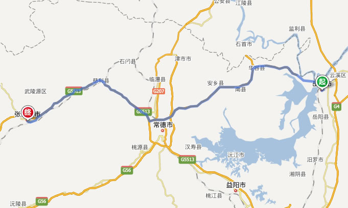 岳陽(yáng)到張家界自駕車線路圖(路程最短):