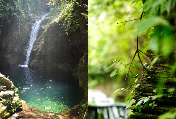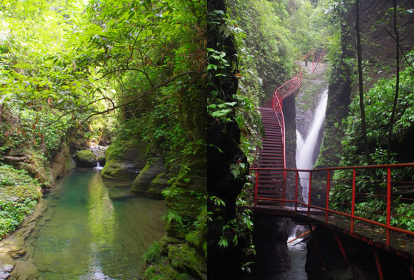 十八潭總名。稍作休憩,我們開始奔赴東線的景點(diǎn)。東線主要是以十八潭為主,下游有4潭:合潭、梳妝潭、魚潭、黑潭;中游有9潭:換衣潭、美人潭、石蛙潭、姊妹潭(3個(gè))、情侶潭(2個(gè))、二龍搶珠,上游有5潭:鬼谷神功(2個(gè))、幽潭、落銀潭(彩虹潭)、路邊潭。十八個(gè)潭深淺不一,淺則1米以上,深則4米左右,形狀各異,有的月牙形,有的豬腰狀,形狀不規(guī)則,石壁上水沖成潭,真是鬼谷神功,此處水質(zhì)細(xì)膩,加之綠林映襯,水色碧綠見底,猶如十八顆翡翠石鑲嵌在山林之間,涓涓溪流晶瑩剔透,飛流直下的瀑布,氣勢(shì)磅礴,蔚為壯觀, 下游的4潭,合潭、梳妝潭、魚潭、黑潭。合潭是仙女峽谷與十八潭的交匯處;梳妝潭的水清如明鏡,又因?yàn)樘秲蓚?cè)石頭的封閉,使這面鏡子靜止不動(dòng),很方便梳妝,照鏡子。在梳妝潭周圍,有一種植物屬于紅豆杉系列,它的形狀好似梳子,可以用來梳頭。魚潭可不能望文生義。魚潭,是在冬天的時(shí)候,所有的魚都聚集在這里過冬,除此之外,這個(gè)潭水淺見底,冬天魚苗聚集,是捕魚的好季節(jié)。黑潭,水深不見底,所以叫黑潭,F(xiàn)在已經(jīng)看不見梳妝潭、魚潭、黑潭了,你猜為什么?建水庫(kù),建水上樂園,淹沒了。 斷魂石的傳說。三國(guó)時(shí)期,高氏和蕭氏一對(duì)夫妻春節(jié)忙活,遇上了天門垮眼,受余震襲擊,打死了丈夫蕭氏。高氏思念丈夫,淚哭不斷,結(jié)果摔死潭中。人們經(jīng)常還能聽到哭聲傳來,不敢單獨(dú)行走,需成群結(jié)隊(duì)。后人為了鎮(zhèn)邪,雕刻一條蜈蚣驅(qū)趕哭魂,多年后,蜈蚣成精,天上打雷,巖石發(fā)光,遭雷所劈,成了斷魂石。 和尚姥,也就是丹灶峰,天門十六峰之一。相傳此峰為仙人化身,赤松子曾在此煉丹,許多詩人在此留下了美妙的詩篇,明代葉守禮《丹灶峰》: 懸崖峭壁隔塵寰,上有仙人學(xué)煉丹。 煉得丹成鶴已去,獨(dú)留丹灶在峰巒。 意思是說,在這險(xiǎn)峻秀麗的山峰上,赤松子潛心煉丹,不受塵世干擾,身心沉醉于秀美的山間,沉溺于丹藥的煉制之中。作者很是羨慕那種與世隔絕的超脫,那種執(zhí)著于自我理想的瀟灑,你羨慕不羨慕? 竹林叢生。我們要學(xué)習(xí)竹子的精神,中空、謙卑;我們要學(xué)習(xí)竹子的精神,抱團(tuán)生長(zhǎng);我們要學(xué)習(xí)竹子的精神,破土而出,節(jié)節(jié)高。 向家塔。打造農(nóng)耕養(yǎng)生游的地方。種田、種菜、種花,農(nóng)家餐館。 爛泥巴根。爛泥巴根和馬桑樹是同科,是這里獨(dú)特的一種樹。馬桑樹亦稱“千年紅”、“馬鞍子”,屬落葉灌木,馬桑樹多枝叢生,一簇一簇的,枝葉像傘蓋,因此“馬桑樹兒搭燈臺(tái)”。春風(fēng)一吹,滿山的馬桑樹、爛泥巴根就吐翠滴綠,顯示出強(qiáng)勁的生命力。打油詩一首: 青青枝條四方走, 肥肥大葉落上頭, 身在路邊無人問, 冬去春來樂悠悠。 秋天死亡,春天長(zhǎng)勢(shì)更加茂盛,它的新生是通過死亡實(shí)現(xiàn)的。山川如此,植物也是如此,這里的一草一木無不透露著道家那種齊生死、等貴賤的精神。 這叫“常道”亭,“道可道,非常道”,據(jù)說是白狐與劉海相遇的地方。吊橋。 十八潭各具特色。 中游有9潭。第五潭叫換衣潭。巖石聳立,霧氣氤氳,巖壁上布滿水汽,猶如雨下。又因過道狹窄,行人需彎腰通過,未免雨水打濕衣裳,在此就要脫下身上衣物,通過后在第六潭再穿上。因此第六潭又叫美人潭,很幽深神秘的。第七潭叫石蛙潭,水淺,又比較平穩(wěn)、安全,春天產(chǎn)籽。余音回響,猶如蛙鳴,給人“聽取蛙聲一片”的錯(cuò)覺。 對(duì)面巖壁叫“臘肉鋪”,那條自上而下的溪流叫“酒長(zhǎng)流”,客人來了,咱土家人熱情,臘肉下炕,苞谷燒,喝兩口! 第八潭第九潭叫情侶潭,比較隱蔽,他倆靜悄悄地談著情話,我們快走,不要打攪他們。 第十潭、十一潭、十二潭叫姊妹潭。下面那個(gè),水淺淺的,溫溫的,是幺妹潭,中間那個(gè)是二哥潭,上面那個(gè)是大哥潭。 潭的旁邊有珍稀植物馬蘭花,馬蘭花又名蝴蝶花、蝴蝶蘭,為多年生宿根草本花卉,根莖短粗,肥壯;ù笮缕,花色絢麗,鮮艷奪目。花有藍(lán)、白、黃、雪青等色。花期5-6個(gè)月,每次花可開花7-10天,頗耐觀賞。馬蘭花在我國(guó)栽培已有2000多年的歷史,目前歐、亞、非3洲均有分布,品種極多,難以計(jì)數(shù)。此花按植株高度不同可分3種類型:矮株型僅18-25厘米,中株型高25-70厘米,高株型可高達(dá)120厘米。馬蘭花喜陽光,適栽于背風(fēng)向砂質(zhì)土壤中。 馬蘭開花的童謠。他們?nèi)⒚眯r(shí)候情感深厚,常常一起跳皮筋。大家會(huì)跳嗎?會(huì)唱嗎? 小汽車,滴滴滴,馬蘭開花二十一, 二五六二五七,二八二九三十一, 三五六三五七,三八三九四十一, 四五六四五七,四八四九五十一, 五五六五五七,五八五九六十一 。…… 還有紅豆杉,像梳頭的篦子,叫“篦子三尖杉”。還有蘭心草,中草藥,空中飄來蘭花的香氣,山谷中峭壁的蘭花,如芳芳人品善良高雅。蘭花如人品有宜人的香氣,蘭花有撩人的幽香,任何花卉的香氣都不能與蘭花比。這幽香時(shí)隱時(shí)現(xiàn),時(shí)濃時(shí)淡,時(shí)遠(yuǎn)時(shí)近。飄蕩在老道灣山谷中,給人清新和愉快的感受。 蘇轍有詩:“谷深不見蘭生處,追逐微風(fēng)偶得之”。 還有大葉榕、玉葉金花、秋海棠、臘蓮繡球、四字馬蘭、紅楓,秋天來臨,看!漫山