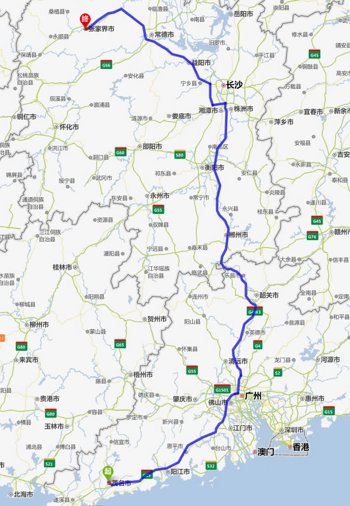 現(xiàn)在位置:張家界旅行社->交通指南->自駕車路線 -> 茂名到張家界旅游自駕車線路,茂名去張家界自己開車要多長(zhǎng)時(shí)間,有多少公里