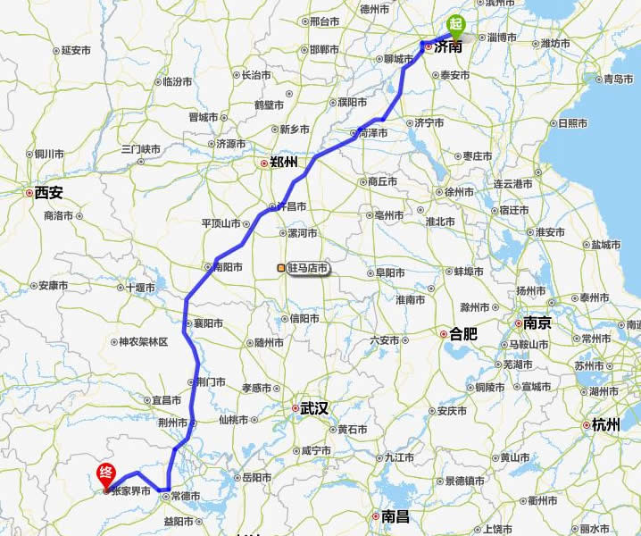 章丘去張家界自駕車(chē)自助游線(xiàn)路圖全程高速):