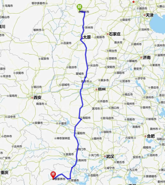 現(xiàn)在位置:張家界旅行社->交通指南->自駕車路線 -> 朔州到張家界旅游自駕車線路-朔州去張家界自己開車要多長時(shí)間,有多少公里
