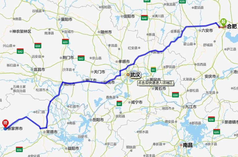 黃山去張家界自駕車自助游線路圖全程高速):