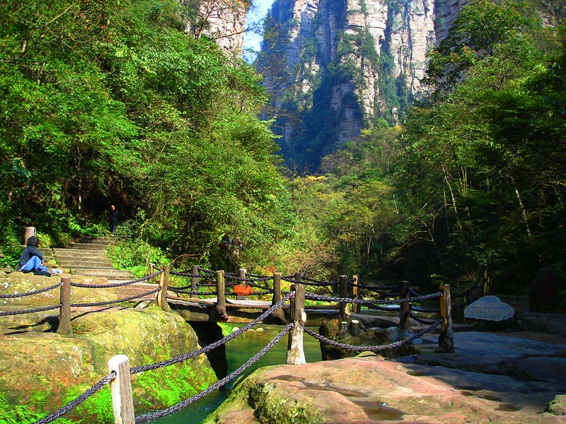 上 午:導(dǎo)游與司機(jī)在機(jī)場(chǎng)或車站、酒店舉牌接游客,然后乘車40分鐘前往【張家界國(guó)家森林公園】(門票已含),徒步游覽“世界上最美麗的峽谷”---【金鞭溪景區(qū)】,(包含觀音送子、豬八戒背媳婦、神鷹護(hù)鞭、劈山救母、西游記外景拍攝地、長(zhǎng)壽泉、千里相會(huì)等景點(diǎn))。走完金鞭溪后,有兩種游覽方式上至山頂?shù)摹驹医缇皡^(qū)】(其一:可從金鞭溪的千里相會(huì)從亂竄坡徒步上袁家界,其二:可從水繞四門乘坐環(huán)保車至百龍電梯下站,然后乘坐世界戶外第一電梯至山頂?shù)脑医纾冽堧娞?2元/人游客自行購(gòu)買)。
